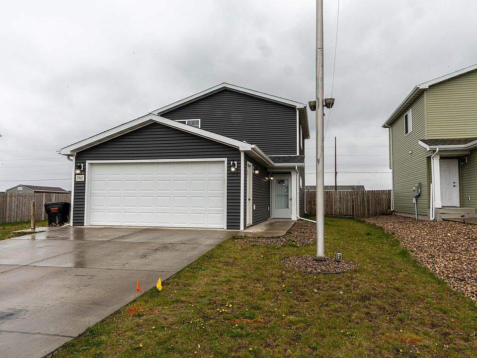 This gorgeous two story home is ready to find its new owners. Entering the front door has a welcoming feel. There is a half bathroom off the entryway, making for convenient placement. The living room has surround sound throughout and plenty of space. The kitchen has dark wood cabinets, matching counter-tops and under lighting throughout. The range has been upgraded to a gas stove. This makes the kitchen feel high end and welcoming. The dining room offers an open concept and a patio door overlooking the deck in the large fully fenced back yard. The upstairs features 2 bedrooms, a full bathroom and a master suite. The master suite is a great size, with a full bathroom attached and a walk-in closet. All of the bathrooms feature under cabinet lighting to match the kitchen. Such an unique feature. The backyard was made to entertain. There is a large deck with a natural gas line for a fire pit. The yard is fully fenced and offers a large shed with water access. The double stall attached garage is heated and has a floor drain. The exterior of the home has lights in the soffit, making your house stand out on the block. Come and check out this great place, you will love what it has to offer. Call a Realtor today. Also ask your Lender about USDA Financing.