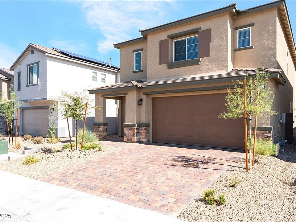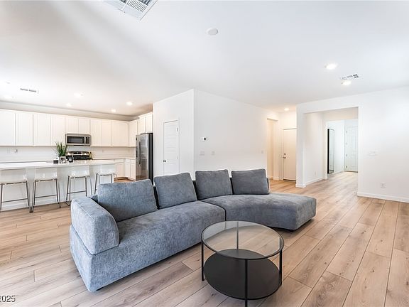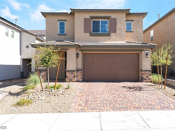 Discover this beautifully maintained, modern two-story home offering a bright and contemporary living experience. It features an open-concept floor plan with light wood-look flooring throughout the main areas and crisp, white walls, creating an airy feel. The sleek kitchen is a standout, equipped with ample white cabinetry, stone countertops, a large island with seating, and stainless steel appliances (including a large refrigerator). Enjoy well-appointed bathrooms, including a primary bath with a separate soaking tub and glass-enclosed shower, and another full bath with a walk-in shower. The comfortable bedrooms feature plush carpeting and contemporary ceiling fans. The exterior boasts attractive desert landscaping and a paver driveway, with the property offering distant views of the Strip and mountains. This pristine home provides a high-quality rental lifestyle. The data relating to real estate for sale on this web site comes in part from the INTERNET DATA EXCHANGE Program of the Greater Las Vegas Association of REALTORS MLS. Real estate listings held by brokerage firms other than this site owner are marked with the IDX logo. Information is deemed reliable but not guaranteed. Copyright 2022 of the Greater Las Vegas Association of REALTORS MLS. All rights reserved.