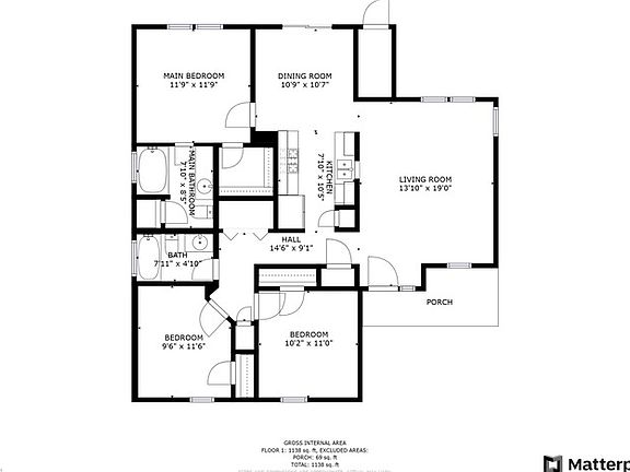 - Total interior livable area: 1,138 sqft