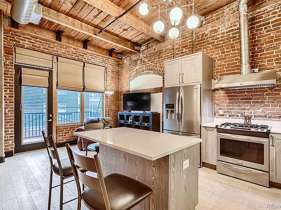 This remodeled home located in the Watertower Lofts will impress with its stunning improvements, historic charm and amazing Ball Park location near restaurants, Union Station, Coors Field, shops and more! The interior will greet you with volume ceilings, exposed brick, wood beams and unbeatable character. This gorgeous home boasts a remodeled kitchen, complete with high-end cabinets, under cabinet lighting, quartz countertops, tile backsplash and stainless steel appliances including a gas range. The updated primary bathroom will not disappoint with its striking hard surface countertops, dual sinks, tile floor and custom walk-in shower. Other improvements include attractive engineered hardwood floors, custom lighting, newer paint, new baseboards and more. As if this was not enough, you will enjoy the balcony with city views, a covered parking spot plus a storage unit. This is a must see property that won't disappoint!