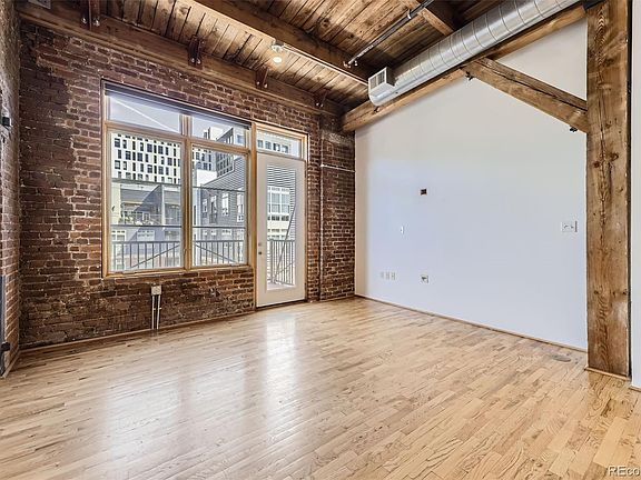 Welcome to WaterTower Lofts, where historic charm meets modern living in a beautifully restored 100-year-old building. Ideally situated just a short walk from Coors Field, LoDo, Union Station, and more, this prime location offers unbeatable access to the best of downtown living. Step inside the secure lobby, featuring a state-of-the-art security panel with app access for both convenience and peace of mind. As you explore the building, you'll appreciate the timeless character of original exposed brick walls, massive timber beams, and the authentic charm of this turn-of-the-century loft. The unit itself welcomes you with solid hardwood floors, soaring ceilings, and an abundance of natural light streaming in through large windows. The thoughtfully designed open-concept one bedroom layout maximizes space, offering a cozy bedroom nook, a full bathroom, and the added convenience of in-unit laundry with a washer and dryer included. The kitchen is equipped with modern appliances, including a gas range, microwave, dishwasher, and refrigerator, along with ample cabinet storage. Step outside to your private balcony to enjoy your morning coffee or unwind in the evening with views of the eastern sunrise. The HOA fee covers an array of services and amenities, including high-speed internet, water/sewer, natural gas, snow removal, building maintenance, security, hazard insurance, and trash removal. Additionally, residents have access to a fully equipped fitness center on the lower level, complete with free weights, machines, treadmills, and ellipticals. This unit also comes with a dedicated storage space and a reserved parking spot conveniently located. Discover the perfect balance of historic elegance and modern convenience at WaterTower Lofts – your urban retreat in the heart of the city awaits!