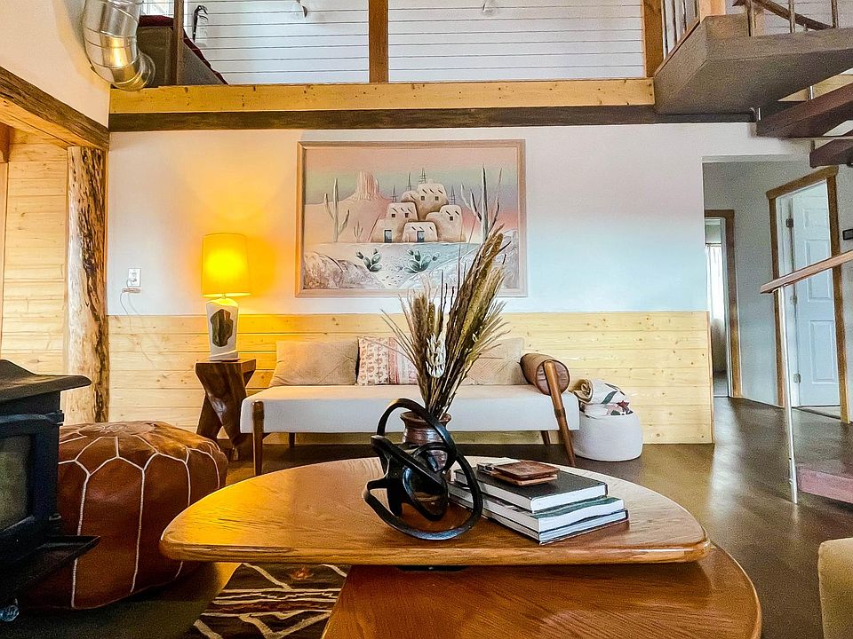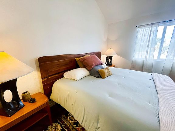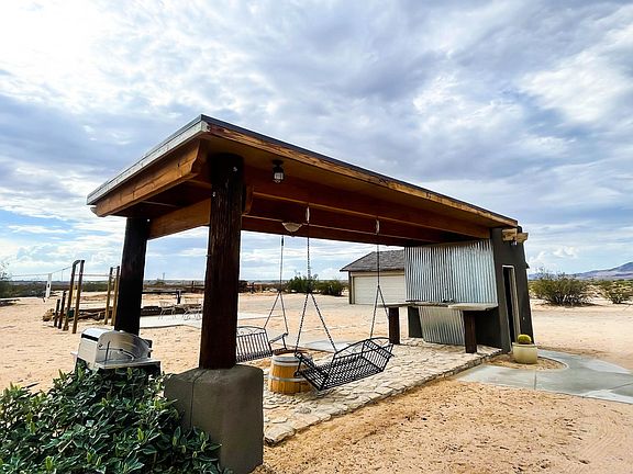 4 bed 2 bath 1632 sq ft fully furnished house avail for rental beginning 9/1 for short term lease (31 to 120 days). On almost 5 acres, this cabin in the desert is just 15 minutes from the North Park entrance to Joshua Tree National Park and full of amenities at home. Perfect for anyone looking to escape to the desert for a few months to a serene destination for living, working, and relaxing. Military families also more than welcome (house is 10-20 min from base). Stunning open kitchen, high ceiling living room, upstairs loft with study/work area. Four gorgeous bedrooms with some mid century modern flair. This backyard has an outdoor BBQ and kitchen too, plus a campfire pit, swing set and volleyball court, trampoline, and even some equestrian accommodations. Two car detached garage with unfinished ADU on site. House can sleep 8 total on beds plus 1-2 on couches. Super fast wifi via Starlink low level satellite, groundwater well on site, and both a swamp cooler and excellent central A/C. Weekly trash service, EV hookups available. New washer/dryer to be installed on site in detached laundry unit by outdoor kitchen. Electric utilities to be paid separately based on monthly usage. Available for showing by appointment. This listing is for a recurring short term guest rental (31 days) with no option to renew after December 2022. 1 month security deposit required. Electric utilities to be paid separately based on monthly usage. No application fees.