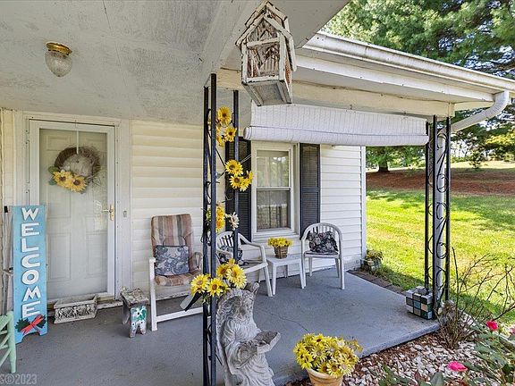 Cute & affordable, this bungalow lays on the charm from the moment you arrive! All you have to do is pack your bags and come on over as this home comes completely furnished - furniture, appliances, kitchen dishes/etc, linens, plus a riding mower! Natural light illuminates living rm through large picture windows creating comfy, cozy atmosphere for everyday living. Effortlessly flowing into dining rm, you will appreciate easy entertaining options. The kitchen is loaded with cabinetry and counter space ready for meal prep and storage. Plenty of room for a table for morning coffee and casual mealtimes. Two nicely sized carpeted bedrooms with ample closet space. Full bath to share and separate laundry rm. Covered front porch ready for rocking chairs, while multi-level rear deck is ready for BBQ’ing. 1/2 acre lot provides space for gardening, plus detached shed has electricity. Roof in 2021. Outstanding home for the modest budget! NO GOVERNMENT LOANS.