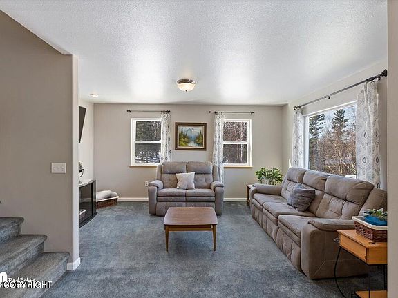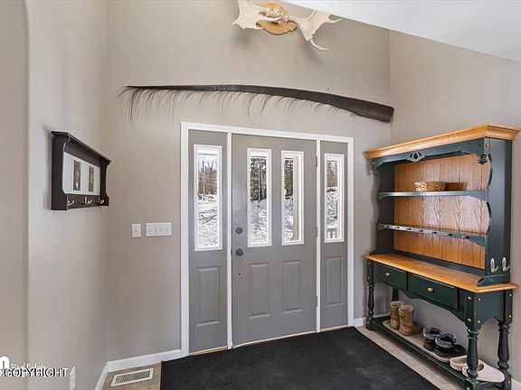 Gorgeous front porch with plenty of sitting space. Large master suite that has nursery/office area, walk-in closet and beautiful views of the Talkeetna mountains from the master jacuzzi tub! Huge bonus room above garage, all bedrooms have walk-in closets, large yard w/ back deck, & end of the Cul-de-sac for great privacy. AND the crawl space is 6' high for maximum storage!