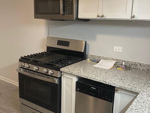 Freshly remodeled ground floor one bedroom in 3-unit building on quiet street just off Milwaukee Avenue. New stainless steel appliances including dishwasher, new granite counters and cabinets. New central AC , furnace, hot water heater, and windows. Full-size washer/dryer just outside rear exit of unit. Tenant responsible for gas and electric. Cat or small dog allowed with pet deposit. One month's security deposit required. No move-in fee.