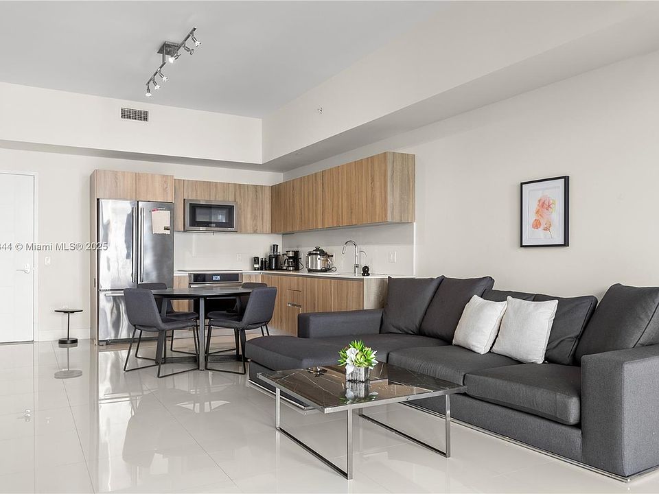 Beautiful 1 Bedroom + Den, 2 full bath residence at Aventura Park Square. Features include elegant tile flooring throughout, Italian kitchen cabinetry, Bosch dishwasher, top-of-the-line appliances, and a large Whirlpool washer and dryer. Unit can be rented furnished for $3,850/month. Enjoy living in the heart of Aventura, surrounded by 50,000 sq. ft. of restaurants, shops, a hotel, gourmet market, and more all within walking distance to Aventura Mall. Available January 1, 2026.