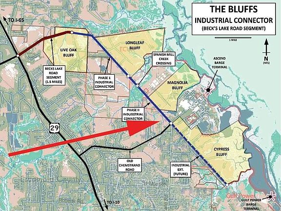 HOME BUILDERS, DEVELOPERS AND INVESTORS! ECUA IS ALMOST DONE WITH THE PLANS FOR "THE BLUFFS" WHICH WILL NEED THOUSANDS OF HOMES RIGHT NEXT DOOR! There is a Video that was produced by Florida West that gives a great overview of "The Bluffs" project that I can send you upon request. With the Commerce park plans for this area this is a great place for affordable "work force" valued housing in this part of the County. Owner would be glad to discuss this more. This is also the entrance to the new "Connector" road between Old/New Chemstrand Rd and Becks Lake Rd. Almost 50 acres of beautiful land with a County zoning which would allow anything from single family residential up to 4-plexes. Many 1000's of jobs already exist in this area of the Escambia River Commercial Area and those numbers are expected to grow in the future. Even now housing is at a premium in most of Escambia County. The attached plat drawing is a concept of the seller to show only a possible layout of homes on the property. Property is zoned for 4 units per acre and duplexes and above are possible. This could be a good parcel for "workforce" homes. The plan for "The Bluffs" will connect New Chemstrand Road with Becks Lake Road providing a shortcut to several of the large planned commerce parks of ECUA, as well as connecting with US 29 north, Molino, and I-65. Property is owned by the Listing Realtor. Also, a portion of the new connector road planned between Old / New Chemstrand Rd and Becks Lake Rd may be located on this parcel, possibly making it easier to develop. It may be possible to re-zone this parcel to allow for a Manufactured Home Park because of the future use of surrounding properties. Owner is the listing Realtor and he will work with a buyer to assist with the development of the property by reasonable owner financing or by take-downs, or a certain level of participation in the project. Information is thought to be accurate but should be confirmed by buyer.