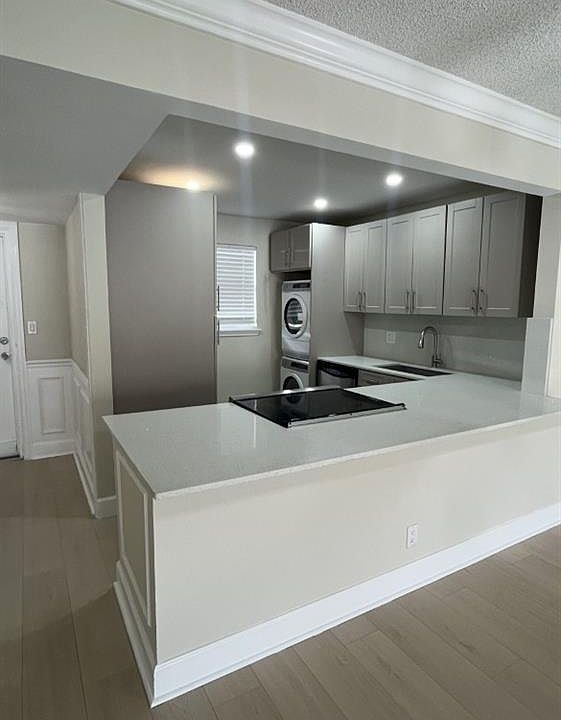 Renovated with exquisite touch. This 2/2 unit has been transformed into a beautiful open floor plan, freshly painted with crown molding and modern baseboards. Vinyl waterproof flooring with designer scheme matching perfectly with large grey shaker kitchen cabinets. Full size washer and dryer, with modern bathroom finishes, new lighting, modern appliances, and a gorgeous quartz counter top. Enjoy the the club amenities which include pool, tennis courts and walking trail.