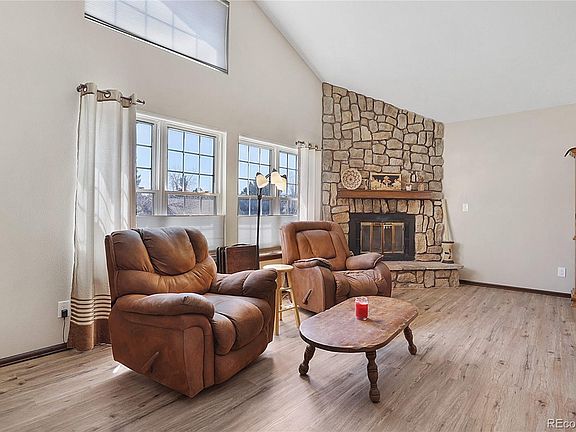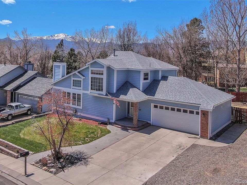 D-20 2 Story Home, with additional off street parking and room for RV or Trailer located in a wonderful area with Pikes Peak views. As your walking up to the home take notice on the Landscaping, Sprinkler system, and nice covered front porch. In the entry you are treated with New Laminate Vinyl Plank flooring through out the main level, Main Level Master, Spacious living room with vaulted ceiling and wood burning fireplace, great Kitchen with granite counters and Stainless Steel appliances. Upstairs there is a nice loft bedroom and full bath, in the Garden level basement enjoy the natural light 2 More Bedrooms, Family room, 3/4 Bath and a larger storage area. Enjoy updated Bath rooms, Central Air Conditioning. Walk out back to a nice private covered trex deck and 48' wide Concrete patio that stretches to end of the home. New landscaping with sprinkler system, Apsen trees, new Sod in the Front and fresh seed in the back yard, planter boxes ready with drip line. Drive through side gate allows access for Boat, RV, or trailer.