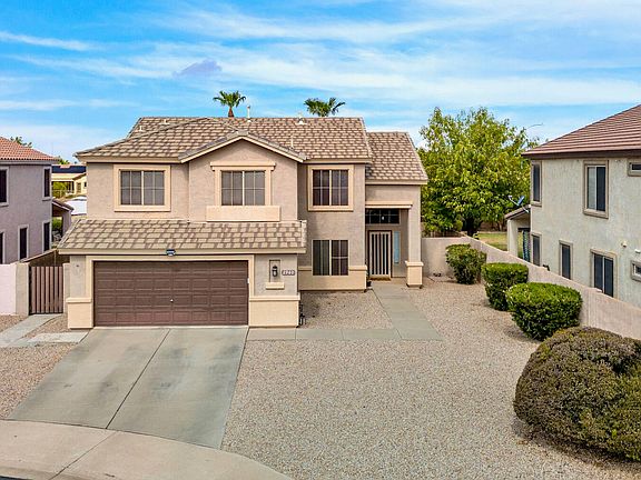 LOCATION, LOCATION, LOCATION!! Beautiful 5 BR, 3 BA home perfectly situated in a quiet cul-de-sac has quick & easy access to both the I-60 & 202 freeways, shopping & dining, & is walking distance from 2 neighborhood parks w/basketball courts, sand volleyball court, baseball field, & playground equipment! Spacious Great Rm. with soaring ceilings connects to equally spacious kit. that features huge breakfast bar, granite countertops, & B/I Micro. Inviting back yard features covered patio, crystal clear, heated play pool & soothing spa. One bedroom and full bath downstairs & 4 more bedrooms & 2 baths upstairs. Large Master Suite features sep. tub & shower, double sinks & large walk-in closet. In a nut shell...you'll love this home.