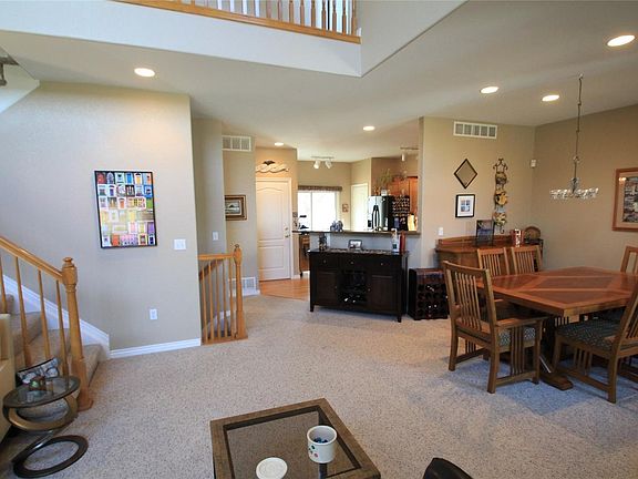 Gorgeous townhome with wide open layout, tall vaulted ceilings, and great architectural detail. Lives like a house with lots of natural light and updated kitchen overlooking large dining room and living room. Vaulted master bedroom with walk-in closet and master bathroom including shower with 2-shower heads. Second bedroom on upper level with private bathroom. Professionally finished basement features rec room and bedroom. Nest thermostat and smart smoke/CO detectors. Newer paint. Lots of storage. Dryer & stove have gas & electric options. A/C. 2-car attached garage. Back patio. Newer windows. More!