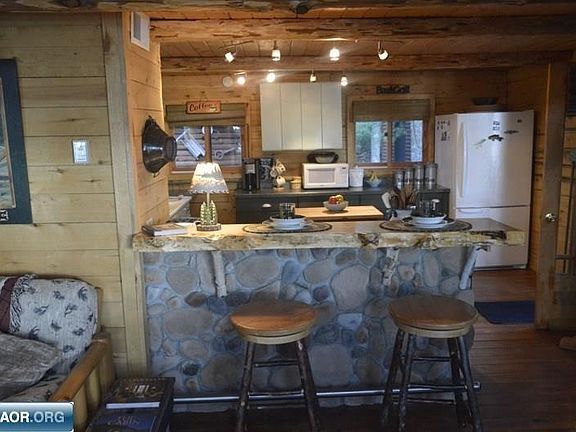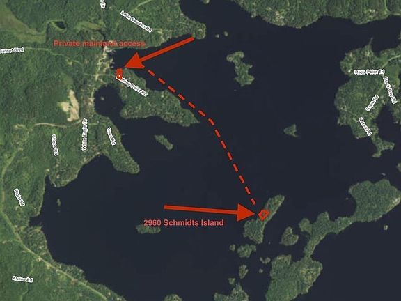 Towering pines, brilliant sunsets, rocky outcroppings and a hand crafted log cabin all located on Schmidts Island plus a private mainland access with garage! It is truly ready to be enjoyed! Fully furnished with unique and extraordinary decor, this very desirable property has a private master bdrm with private deck, reading nook & fplc, designed by Dale Mulfinger Vintage metal cabinets, porcelain sink, and stone/birch breakfast bar all in the kitchen. Open to the living room with stone fplc and patio doors onto a huge entertaining deck. Patio/deck on the water's edge, another dock/shorestation for the Northwoods pontoon that is included. Roadway from dock to the cabin to walk or ride your 4-wheeler that's included. Compliant septic system, wood fired log sauna, two additional buildings, loon calls, and eagles to greet you. You can own this stunning property! Check out the virtual tour!