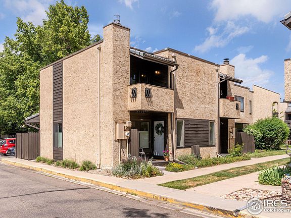 Centrally located townhome with stunning Flatirons views! This one owner 3-bedroom, 4-bathroom gem boasts an open-concept main floor with a gas fireplace and an upgraded kitchen featuring granite counters, gas stove, upgraded cabinets and newer appliances, including washer and dryer. The primary bedroom offers an ensuite bath and private balcony with views of the Flatirons.There is an additional bedroom and bathroom upstairs. The finished basement provides a versatile non-conforming bedroom or a great flex/office space. Enjoy central air, a high-efficiency furnace, and reserved carport parking. Hunter Douglas window coverings. The complex features an outdoor pool, hot tub, and landscaped common areas. Don't miss out on this incredible opportunity to live near Goose Creek and the Boulder Bike Trail system, with easy access to CU and nearby bus lines. $7500 seller concession being offered to the buyer.