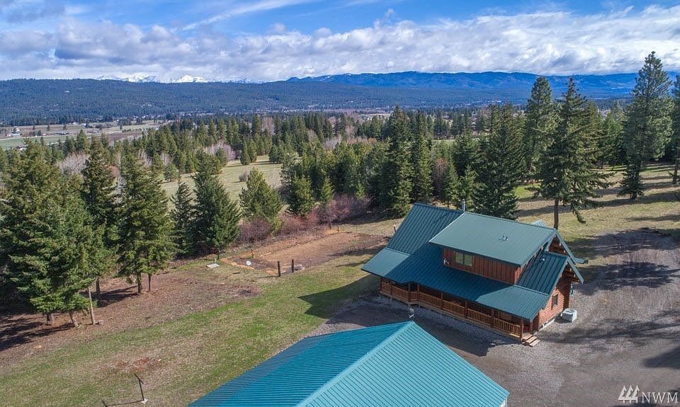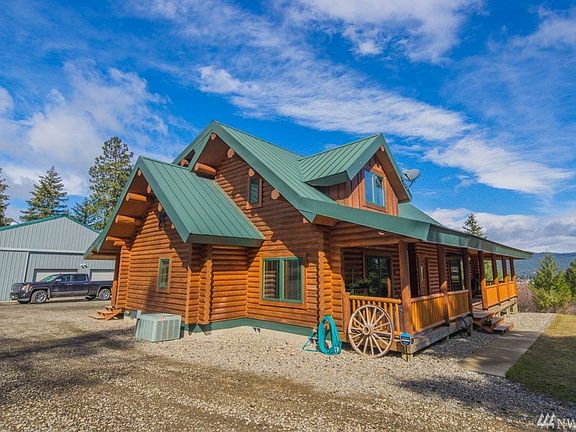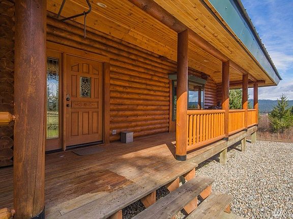 Stunning custom log home in immaculate condition. Open concept, grand staircase, huge windows & exposed beams. Pellet stove. Lg master on ground flr w/ ensuite bath, & w/in closet, 2nd b/r on upper floor, and lg loft area that could be used as a third bedroom, and could be easily framed in. Full bath on 2nd flr as well. Wrap around deck. Situated on 20 acres, w/ outbuildings & pasture, a lg shop for equipment and toys, fruit trees, gardening spaces and fantastic views of the Stuart Mountains.