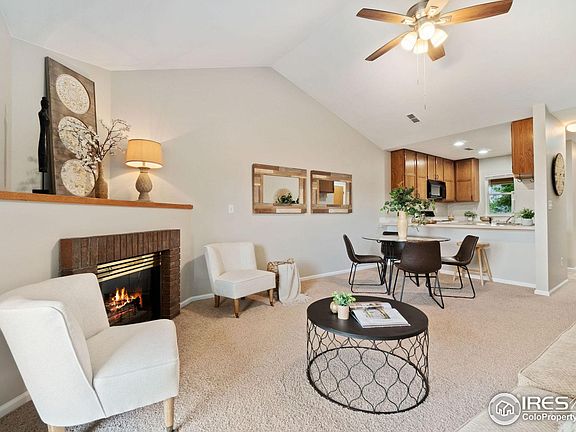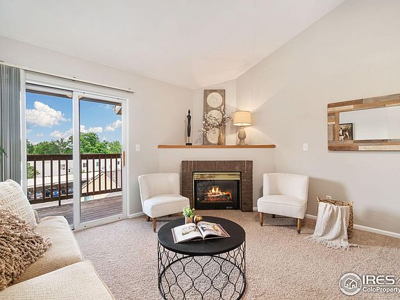 Beautifully updated top floor 2-bedroom, 1-bathroom condo on the West side of Fort Collins. Nestled close to the foothills, this unit offers unparalleled access to scenic hiking and biking trails, perfect for outdoor enthusiasts. Step inside to find a bright and inviting vaulted living space featuring fresh interior paint and a cozy gas fireplace, ideal for relaxing evenings. The open-concept layout seamlessly connects the living area to ample kitchen, ensuring a perfect space for entertaining. Enjoy your morning coffee or unwind after a long day on the private balcony, boasting privacy and views of the surrounding landscape. This condo is the perfect blend of comfort and convenience with beautifully updated bathroom, vaulted ceilings in both bedrooms, new light fixtures throughout, offering both tranquility and easy access to outdoor adventures.
