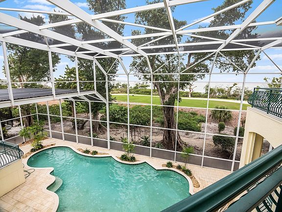 NEW ROOF IN PERMITTING, NEW ELEVATED POOL EQUIPMENT, NEW 2ND FLOOR TILE BALCONY, Experience luxury at its finest in this spectacular 5 bedroom plus den residence, boasting 5.5 baths,each bedroom featuring its own private bathroom. This home is an entertainer's dream with a temperature-controlled wine room, wine bar and a spacious, Huge screened lanai encompassing a swimming pool with a separate spa, with a outdoor grill. Culinary enthusiasts will revel in the gourmet kitchen equipped with top-of-the-line Wolfe and Subzero appliances. The residence includes dual amenities for convenience: 2 fireplaces, 2 washers, and 2 dryers. Ensuring peace of mind, the home is equipped with a generator and a 1000 gallon propane tank. Car enthusiasts will appreciate the expansive 3-car garage. Situated on the famous picture hole of the Sanctuary Golf Club, the property offers stunning views of Pine Island Sound. As a homeowner, enjoy the privilege of a private equity golf membership without the wait as the seller has a equity membership. The community Arthur Hills Audubon Platinum Champion golf course, fitness center, tennis court, golf pro shop, clubhouse, restaurant, and bar.