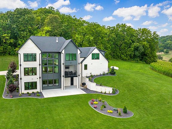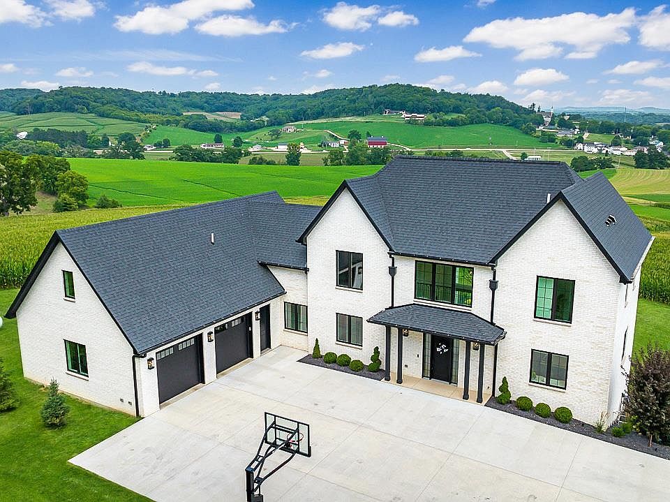 Welcome to your dream property at 29600 Centerville Rd.! This stunning home is nestled on 14.01 acres of beautiful land, just 10 minutes south of Dubuque, offering amazing views overlooking the historic town of St Donatus. As you enter, you'll be captivated by the grand floor-to-ceiling windows in the living room, boasting a 20 ft ceiling and breathtaking views of rolling hills, woods, multiple farms, wildlife, and picturesque sunrises/sunsets. The luxurious master suite includes an office, two walk-in closets, custom built-ins, and a spa-like master bath. You’ll love the screened in porch, bridge walkway with custom iron railings, and epoxy garage floor covering. Features like separate laundry and mudrooms, ample built-in storage, and a massive 38 x 25'4 heated garage with an 18 x 8 storage room ensure you'll have plenty of space for all your needs. This energy-efficient home is equipped with custom Smith cabinets, quartz countertops, spray foam insulation, 8 ft doors, 3 AC/HVAC systems, a security and camera system, high-end landscape lighting, and much more. There is a private blacktop land and annual farm income. Don't miss this rare opportunity to own a meticulously kept, like-new home with highly sought-after acreage. Schedule a showing today and experience the unmatched beauty and tranquility this property has to offer!