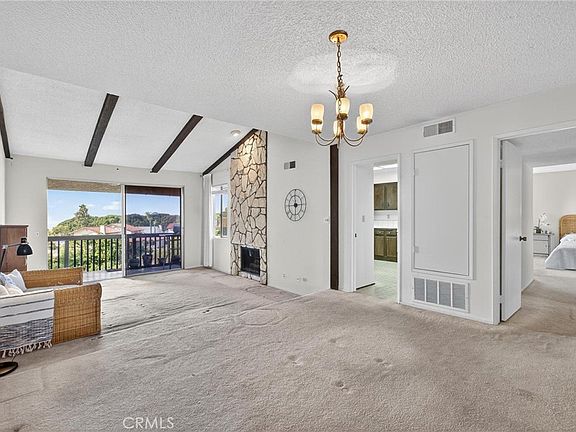 Ocean-view end unit with incredible potential. Enjoy ocean and canyon views from this extra-large one-bedroom condo featuring high ceilings, a flagstone fireplace, a private deck, wet bar, in-unit laundry, and four spacious closets. Located in a desirable community offering a pool, spa, secure parking, security door, community room and easy elevator access. Nestled on a cul-de-sac near two parks, golf course, top-rated schools, shops, and restaurants. This unit is on the top floor with ocean views from the balcony, living room, kitchen and bedroom and offers a rare opportunity to customize and create your dream coastal retreat.