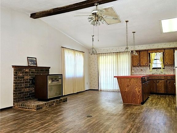 Brick country home on 1 acre.Home features 2 bedrooms 2 bath open living/kitchen area,sun room off the master bedroom and one car garage. Minutes from lake Wister.