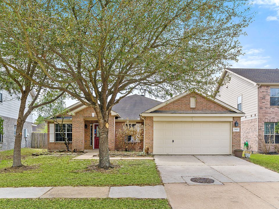 Charming 3 bedroom, 2 bathroom, single-story home featuring a 2-car attached garage! Inside, you'll find wood-type flooring, lovely archways, tile in the wet areas, and carpeted bedrooms. There's a spacious formal area, a separate living space, a utility room, breakfast area, and an island kitchen that includes granite countertops and a tile backsplash. The primary bedroom has a garden tub, separate shower, and walk-in closet while the backyard boasts manageable yard space, an extended patio, and a storage shed. This home is located on a cul-de-sac street with proximity to fantastic neighborhood amenities, TX-99, I-45, Hardy Toll Rd, and the Woodlands! Showings from 6am-8pm: Download Zillow app to access. Search home in app. Click Self Tour to unlock while at front door.