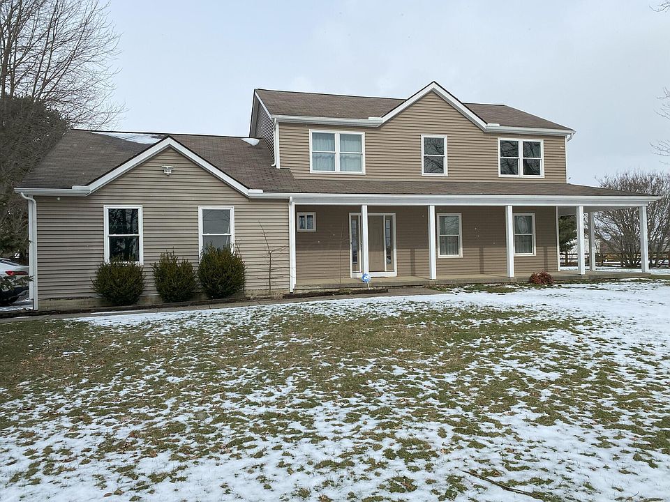 This 2-story country home on 1.88 acres in the Olentangy school district has 3 large bedrooms, 2.5 baths, a large family room, and living room. The main floor offers solid surface flooring in high traffic areas for easy maintenance and a beautiful finish. All other living areas have newly installed carpet. The kitchen offers beautiful cabinetry, a large L-shaped countertop with ample seating and eating space. Upstairs, you'll find the primary bedroom, which features a full bath and a walk-in closet with lots of storage. In addition to the primary, you'll also find 2 additional bedrooms, a full bath, and a flex space that could be used as a home office. This home has upgraded, insulated vinyl windows and siding installed for energy efficiency and is available for immediate occupancy.