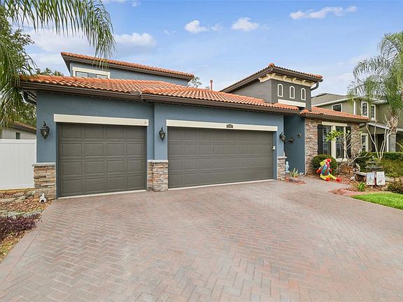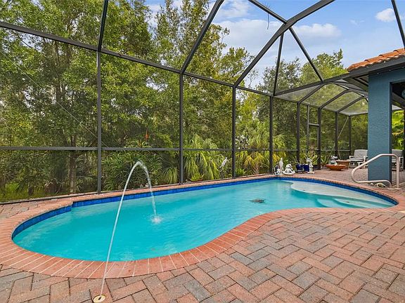 Welcome to Terra Bella in Land O’ Lakes! This well-maintained, 4 bedroom, 3 bath home offers 2,893 square feet of living space with an upstairs multifunctional bonus room-whether a playroom, office, or game room. The bonus room comes complete with a walk-in closet for a possible fifth bedroom and is also plumbed for a possible wet bar. The kitchen is a chef’s dream, featuring granite countertops and upgraded stainless steel appliances featuring a double oven, a Bosch dishwasher, gas stovetop, and an oversized refrigerator. Your well-organized pantry will provide plenty of space to store all your kitchen needs. The wood cabinetry boasts upgraded 42” upper cabinets with decorative crown molding, a pull-out pot organizer, and pull-out lower cabinets for easy access. The great room, dining room, kitchen, and breakfast area are combined to create a spacious, inviting area to entertain or just relax with family. The great room opens to your outdoor oasis featuring a screened-in pool overlooking a secluded, wooded paradise. If you prefer outdoor cooking, your outdoor space also includes an outdoor kitchen featuring a gas grill and your own extra-large Green Egg! All bedrooms are located on the first floor. The primary suite features an oversized room with a walk-in closet with built in storage, tray ceiling, and luxury wood vinyl. The bathroom boasts dual sinks with corian countertops and a large, walk-in shower with a rain head shower head and shower bench. Two of the downstairs bedrooms share a bath equipped with shower handicap support bars and altered entryways for wheelchair access. Plantation shutters and blinds are included throughout. The laundry room is conveniently located downstairs and includes storage cabinets, a stainless utility tub, and a dual, wall drying rack. As you approach your new home enjoy the curb appeal of a paved driveway with paver curbing, fresh paint, a tile roof and stone accents to highlight the entryway and garage. The home also includes an attached three-car garage with two garage door openers, a work bench and overhead storage. When you approach at night you will be greeted by programmable, perimeter LED lighting. The community boasts a low HOA and a community pool. Close to Tampa Bay Outlets, Wiregrass Mall, The Grove shops/movie Theater, and the Krates. The community is also close to major highways and the Land O’Lakes Recreation Center where you can play baseball, softball, soccer, football, tennis, skateboard, indoor/outdoor swimming pools and a dog park. Don’t miss out on this wonderful find in this highly sought after community. Schedule your showing today!