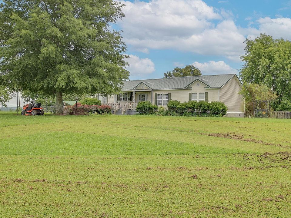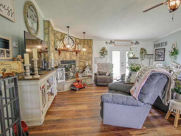 Don't miss out on this rare opportunity to own 5.25 acres and a 3 bedroom 2 bath mobile home on a permanent foundation with an extra septic tank . As you arrive at the property you will be met by a large chain link fence surrounding a large portion of the front and back yard and a cozy covered front porch perfect for enjoying the view of the rolling pasture across the street. Upon entering the home you will be welcomed by a large kitchen and Livingroom perfect for entertaining. In the back yard you will find a storm shelter equipped with power and a barn with a couple stables perfect for horses. The back portion of the property was previously fenced for horses. On the right side of the home you will find the extra septic tank along with a small metal storage building and a practically new wooden storage building ready for a tiny home or a workshop.