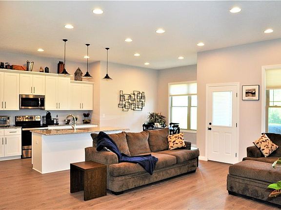 Why wait for new construction when you can have this as good as new 2 year old house in a very popular neighborhood. This spacious ranch home with a split floor plan is on one of the largest lots in Wildflower! 3 bed 2 full baths. Open floor plan w/ an abundance of windows providing lots of natural light. 9+ foot ceilings thru-out. Oversized covered front porch and back patio. Large living room. Gourmet kitchen w/ Center Island, granite countertops, Breakfast room & dining room or you could use the dining room as a study. Main suite w/ walk-in closet & luxury walk in shower, plus a tub, double sinks. Full basement currently is insulated, semi-finished with an egress window and has plumbing for a full bath. Move in ready!