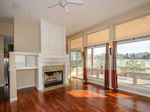 Gorgeous home on 10th Hole of Pine Creek Golf Course! 5 beds (6th bed if using flex room on bsmt level)/5 baths/study. Custom Ranch with Full Walk-out Basement. Master Suite + 2nd Bed on Main. District 20 Schools. Contemporary Exterior Design with Stacked Stone details, easy care xeriscaped yard. Light, bright fabulous interior: beautiful details such as American Cherry hardwood flooring through main floor with inlay designs in Foyer; hand-troweled plaster walls; exquisite built-ins in main level Office/Study, 10-13 foot ceilings on main level. Gourmet KITCHEN updated 2014 with Thermador gas stove/range & Zephyr Vent Hood, Bosch dishwasher, Pot Filler tap over Stove, Top-Loading Microwave, Wine/Beverage mini-fridge, Stainless, Slab Granite and Bamboo counters with complementary backsplashes with glass tile, island, home desk built-in. Spacious KITCHEN EATING AREA with access to Large COVERED DECK; Formal DINING with Butler Bar/Buffet built-ins featuring Slab Granite, glass-front cabinets, wine rack, rope molding; Hearth/GREAT ROOM on Main with gas log fireplace, granite surround, beautiful molding and mantle. Walk-out lower level features Big FAMILY /REC ROOM with Wet Bar/Mini-Kitchen featuring dishwasher, fridge, microwave included; WINE CELLAR/GAME ROOM - an extra space for fun. Many upgraded features. Ask for list! MORE: Window treatments, Sconce lighting, Wired for surround sound, Entertainment niches; two furnaces, two newer 50-gal water heaters; NEST thermostat ; Stamped Concrete Patio with Fire Pit with protective Pergola; wired for Invisible Fence (control box not included). GARAGE features finished walls, epoxied floor, 220v in garage suitable for car charging. Staircase to upper deck replaced 2014 with Trex (beautiful!). Tons of improvements since last sold.