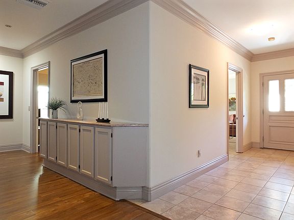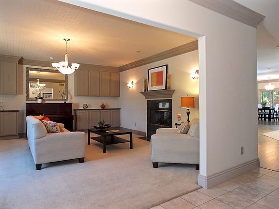 Welcome Home - This outstanding single level Rossmoor home boasts a magnificent resort style backyard with heated pebble-tec salt-water pool with Baja shelf, grotto, water slide, rock waterfall and covered patio, all impeccably landscaped. Nestled on a prime center tract location, fruit trees and beautiful stonework frames and compliments this contemporary custom home, with a thoughtful floor plan, high ceilings, crown moldings, beautiful hardwood and wood-look tile flooring throughout. A dedicated office and separate bonus room provides the perfect place to work and work out from home. Bright and warm interiors highlight the open plan family room, kitchen, and dining areas, warmed by a custom double-sided fireplace/mantel. The kitchen overlooks the sparkling pool/patio area, and includes custom cabinets, stainless steel appliances, awesome center island with prep sink and sleek granite countertops. The extended dining area is located at the far end of the family room. After dinner, step through the sliding doors and enjoy drinks seated on the expansive covered patio area. The master suite features a spacious bathroom with double vanity, shower, skylight, and cedar-lined walk-in closet. The second bath provides direct access to the pool. Other amenities include 2 additional bedrooms, indoor laundry, 2 car attached garage with additional storage, extra-wide driveway with room for RV, central A/C, and a powder room for guests.