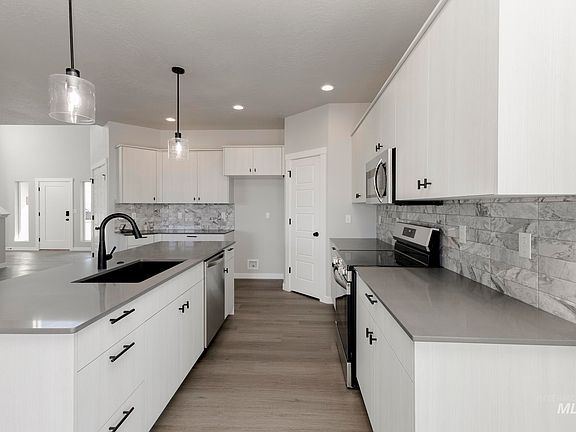 Embrace the comforts of a brand new home in Kuna, Idaho. Prepare yourself for modern splendor in the Milano 3250. Breeze through the 2-story vaulted entryway to discover the grandeur that awaits inside. Experience pure delight as you encounter the modern kitchen area, dining room, and spacious living room, complete with a cozy gas burning fireplace. The kitchen comes with stainless steel appliances and stylish solid surface countertops, adding both functionality and aesthetics. A main level bedroom and adjacent full bath offer a perfect guest suite or an office space. Head upstairs to find a central loft flooded with natural light and 3 additional bedrooms. Double doors lead you into the primary suite, where the larger than life primary suite and oversized en suite bathroom guarantee a luxurious oasis of relaxation. The Milano provides an abundance of space for you to fill with life, love, and laughter. Photos are of the actual home!