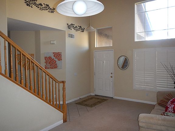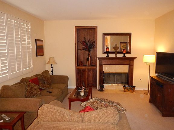 Nice 3 bedroom 2.5 bath with vaulted ceilings in a desirable neighborhood with walking distance to Albertsons and Starbucks. Easy maintenance yard, with front porch and rear patio partially covered. Open floor plan, family room w/fireplace open to dining & kitchen with sliding glass door to backyard. Kitchen has Corian countertops. Large master bedroom with walk in closets. Plantation shutters throughout and finished garage with heat, a/c and epoxy flooring.