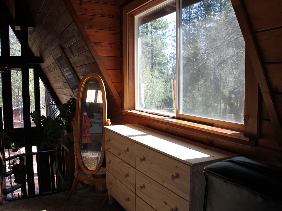 Beautiful, solar, Tahoe-style, A-frame house with knotty pine and cedar interior. House has new metal roof and skylight. House is off the grid and has a 1000 KW Solar System, 2 car detached garage/ shop. Garage/shop houses. inverter and battery pack. Land is level with good sun and trees. 12 good laying hens and 1 rooster come with the property.