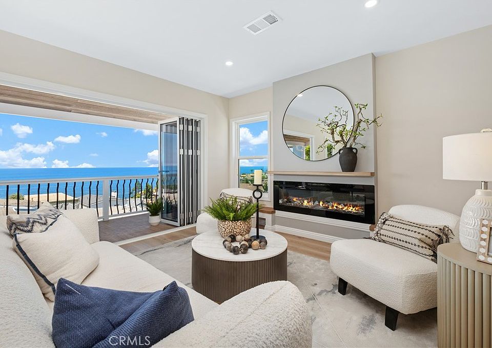 Presenting a two bedroom + office contemporary completely renovated LAGUNA BEACH residence boasting breathtaking panoramic ocean views and three beautiful decks ! This cottage home blends contemporary design with a modern aesthetic, offering a haven of relaxed coastal living at its best. Ideally positioned just moments away from Laguna's renowned beaches such as "Victoria Beach" and the prestigious 5-star Montage Resort. The open floor plan seamlessly integrates the kitchen, dining area, and living room, creating a fluid space that captures the beauty of the Pacific Ocean. Expansive floor-to-ceiling glass sliders lead to an attached ocean view deck, extending the living area and embracing indoor-outdoor living. There are 2 additional outdoor decks with one used for parking for 2 cars on the main level. The gourmet designer kitchen, recently remodeled with new countertops throughout, stainless steel appliances, including a dishwasher, and features a breakfast bar that effortlessly connects to the spacious living room. This charming beach home is a stunning blend of textures and upgrades such as brand new light oak luxury vinyl flooring, sleek light contemporary countertops, and recessed lighting. The residence also boasts modern new windows and doors, ensuring optimal comfort and natural light. The primary bedroom is a serene retreat, offering awe-inspiring ocean views. Both the primary and secondary hallway baths have been recently remodeled and have beautiful finishes, glass shower doors, and new vanities. A cozy secondary bedroom with a private patio adds to the overall allure of this remarkable beach home. Convenience is key, as the property includes in-home laundry complete with a washer and dryer. Garage on main level is used as an office or could be an additional third bedroom. Perfectly situated in close proximity to the Village and the inviting beaches and coves of South Laguna, this residence offers easy access to amenities including renowned restaurants such as the "The Drake" jazz bar steps away, galleries, the local trolley stop, boutique shops, and more. Embrace the epitome of modern coastal living in this exceptional ocean view sanctuary, delivering the finest in Southern California's luxurious lifestyle.