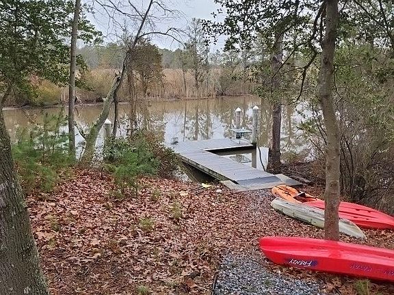 Custom built contemporary home sits back off the road on over 17 acres with water access from the private dock to the river. Open floor plan with beautiful kitchen with center island, recessed lighting, granite countertops, wolf 36" cooktop with a dining area that continues into the sunken great room with high ceilings, stove wall fireplace and sliding glass doors that lead to the rear decks with scenic views of the rear yard and water. The formal dining area is also open to the great room with a large wet bar, also providing access to the side screened in porch. The primary bedroom is on the main floor with a gas fireplace and private patio overlooking the rear yard, the private on suite bathroom boast an oversized tile shower with soaking tub, sauna and vanity with double bowl sinks. Upstairs has 2 additional bedrooms and a full bathroom.