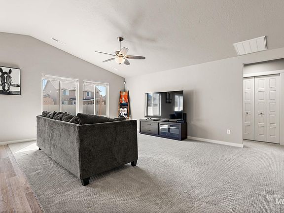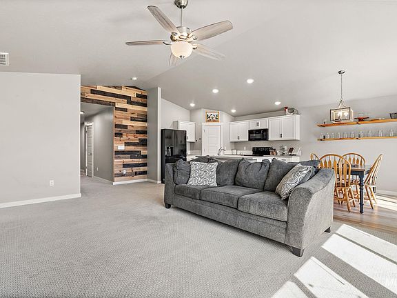 This beautifully-maintained 3-bedroom, 2-bath home with a bonus room offers a practical and comfortable layout. Built just 3 years ago, it features an open kitchen with a pantry and island, making meal prep and everyday living easy. The vaulted ceiling in the great room adds a nice sense of space and openness. The split-bedroom floorplan gives a bit of privacy, with the primary suite offering a walk-in closet and en suite bathroom with double vanities and step in shower. The bonus room is a great option for a home office, playroom, or extra living space. Outside, the fully fenced backyard includes a chicken coop & raised garden beds, and has plenty of room to relax or entertain. Located in the quiet Delores Sub, this home sits off the main roads but is still close to 10 Mile for an easy commute and quick access to nearby amenities.