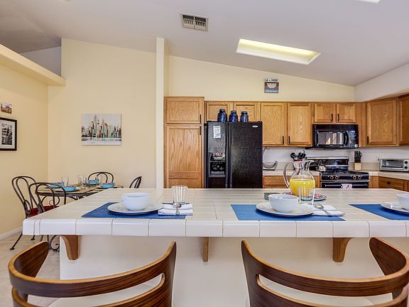 Casual desert living is yours in this delightful three-bedroom, two-bath California Contemporary style stucco home in the Panorama Park neighborhood of Cathedral City. Sleeping six, family and friends are welcome, with a three-car garage, expansive gathering room with vaulted ceilings, fully-equipped cook's kitchen, and private pool and Jacuzzi. Catch rays, admire the mountain views, and relax in complete comfort and convenience! Where You'll Be Staying: Main Bedroom: King Bed, with Shower and Soaking Tub Guest Bedroom One: King Bed Guest Bedroom Two: King Bed One Additional Full Bath with Shower/Tub Combo What This Place Offers: Approximately 1,800 sq ft Located in North Cathedral City 4 TVs Propane BBQ Wood Burning Fireplace Garage Parking Pool Hot Tub Washer Dryer The Fine Print: 30 Night Minimum Children Allowed Pets Allowed Utility Deposit Required for Monthly Charges of Gas/Electric