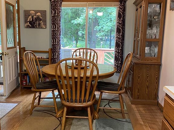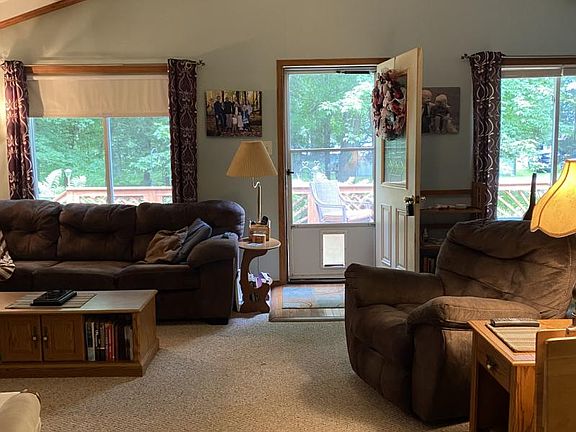 Located in a serene, wooded setting, this three bedroom, one bath home with wrap-around front deck would make a great vacation home, year-round home, or seasonal rental home. Only steps (approximately 600 ft.) from a wonderful Sandy Beach access, you and your guests will enjoy Mother Nature at her finest. No need to worry about maintenance--New vinyl siding and new metal roof were installed in 2015/2016. All appliances were replaced in 2019 (refrigerator in 2018) New furnace with Central Air was installed in 2017 and whole house generator in 2015. The home boasts 3 bedrooms, 1 bath, 2 car attached garage, vaulted and beamed ceiling in the Living Room/Dining Room, Galley Kitchen with oak cabinetry. The laundry area is a generous 24x8 with additional cabinets and a door wall to the spacious back yard. In addition to the home itself, there are additional out-buildings: 10x16 Amish-built work shop, 19x21 car port, and 8x8 treehouse - all with electricity. Additionally, an enclosed space under the treehouse and another 8x8 gambrel roof shed. The creatively landscaped yard has many shade trees and is 100x200. Showings by appointment - Call to view and enjoy your new home before summer ends!! Broker Owned.
