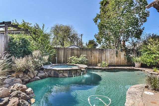 Beautiful expanded single level 3 bedroom, 2 bathroom bungalow. 1,343 sq ft home sits on a 7,500 sqft lot, (per public record). Updated granite kitchen, remodeled bathrooms, en suite master bath with jetted tub. 200 amp panel, new sewer line, central heat and air conditioning, dual pane windows, separate laundry room, attached garage . A landscaped backyard oasis with a heated, custom designed walk-in saltwater beach pool and jacuzzi spa. A luxury resort experience at home! New putting green in backyard. Sliding bedroom doors windows open fully to the pool and entertainment area. Fully fenced yard, covered back patio with mature lemon tree! Close to downtown restaurants and shops, and public transportation, 4 minutes to BART. An entertainer's dream! Resort living with ready access to downtown SF.