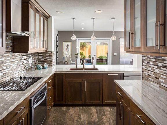 Newly remodeled executive home located in the desirable Cape at Calavera Hills. 1724 square feet of upgraded modern decor. Beautiful wood plank tile floors and Berber carpet combo provide contemporary cleanliness with very low maintenance. Stunning kitchen granite counter tops, combined with stainless and bronze tile backsplash are magazine worthy. Solid wood and glass cabinets with pull out shelves and retractable drawers. Upgraded stainless steel appliances and Cherry Red front load washer and dryer. Gorgeous blue crystal rock gas fireplace, with chrome mantel, chrome and glass doors and built in television. Spectacular canned lights and stunning light fixtures throughout. Custom window coverings. All baths have novel sinks, and vanities and artistic custom tile. Cozy back yard with wooden deck, and faux fireplace. Brand new AC and heater. Close to beach, parks, community center, shopping and schools. 4 bed room. 2.5 bath. Community pool and spa.