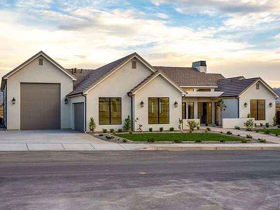 This one of a kind home was just completed by RS Custom Homes. The architectural design, large windows & 20' multi sliding door take full advantage of the stunning views. The home backs up to BLM land on the Utah/Arizona border so these views are here to stay! Tall vaulted ceilings, large fireplace, hardwood floors, custom lighting & white oak cabinetry will impress you from the moment you walk inside. The split floor plan gives the primary bedroom privacy from the guest rooms. All bedrooms have direct access to bathrooms and walk in closets. The pool/spa, outdoor fireplace, shower & pool bathroom make this home an entertainers dream. Garage is oversized & fully insulated. RV garage is 18'x46' with a 12'x14' door. This is a property you must see for yourself! (contractor/agent/owner)