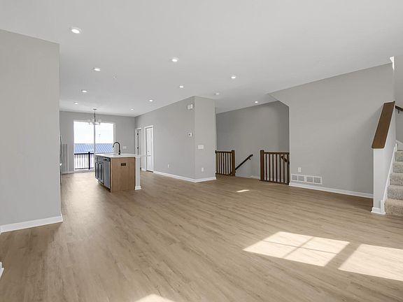 Stepping through the front door there is a staircase that takes you to the main level. The open-concept main level includes the dining room, kitchen, family room, half bathroom, and laundry room.