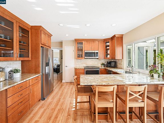 Welcome to this well-maintained home located in the charming city of San Ramon. This delightful single story home offers 3 bedrooms, 2 baths, 1,530 square feet on a 9,000 square foot lot. Upon entering, one can enjoy the multiple entertaining areas – a formal dining room and a spacious living room. The many upgrades throughout include laminate flooring, new interior paint, newer roof, an updated gourmet kitchen with double ovens, pantry, stainless steel appliances, custom cabinets and an open flow to the family room with vaulted ceilings and custom built-ins. This charming house offers plenty of areas to entertain inside and outside. The primary bedroom features access to the private outdoors with no rear neighbors on a generous sized lot which includes a pergola, swing, and a new shed! Don’t miss this opportunity to call this home! This ideal location is close to award winning San Ramon schools, parks, freeways and nearby downtown City Center offering shopping restaurants movies and more!