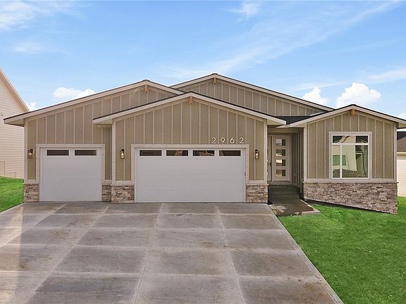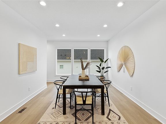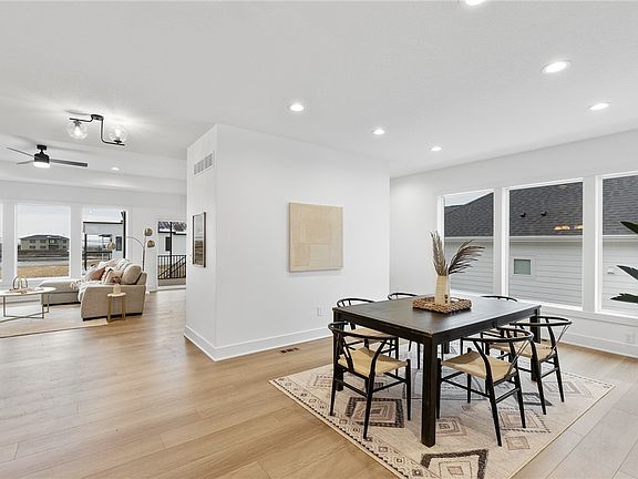 The mid-century vibe of this Frampton Homes beauty grabs your attention from the second you lay eyes on it. You'll love the open floor plan flooded w/light from the oversized windows. The oversized tray ceiling & custom FP surround add character. The kitchen features a large island, soft-close cabinetry, quartz countertops, SS appliances & walk-in pantry w/tons of storage & custom barn doors adding interest & functionality. A large 3 panel slider leads to the composite, screened in deck. Custom lighting & textured backsplash add more interest! The semi-separted but open dining room adds great space for entertaining! Split bedrooms give each main floor bedroom a private feel. The primary suite incl a tray ceiling, walk-in closet w/custom organization & 5 piece bath w/comfort height dual vanity, soaker tub, stunning tile shower & water closet w/floating shelf storage. The 2nd bedroom & full bath sit at the front of the home. The custom designed mudroom bench adds more visual interest & a separate laundry room complete this floor. Don’t miss the large fully insulated, 3 car garage w/ 8’ insulated doors, quiet openers w/wifi & side access walk door. The daylight bsmt incl a large family room, wet bar, 2 addt’l BRs, ¾ bath & TONS of storage. A whole house humidifier & dual zone HVAC add to the energy efficiency of the home w/2x6 construction & irrigation to keep your yard looking great. All info obtained from seller & public records.