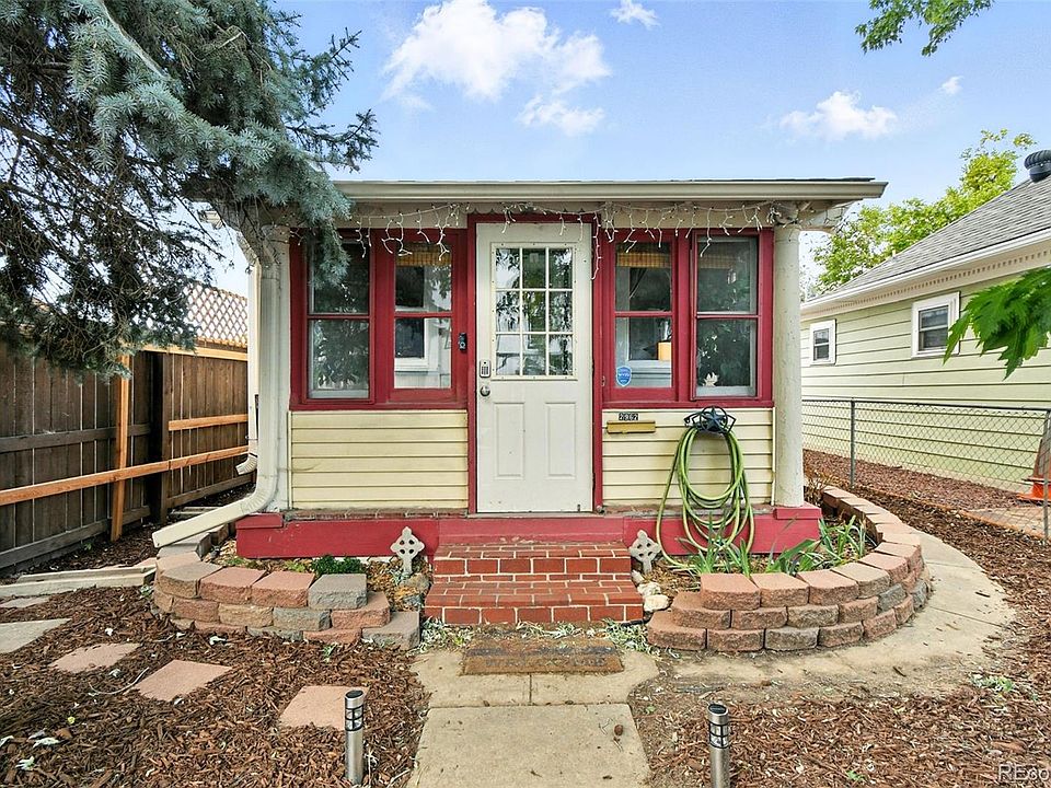 Welcome to this charming, character-filled bungalow in highly sought-after Englewood. A fully enclosed front porch welcomes you with warmth and charm—ideal for greeting guests or enjoying a quiet moment with a good book. Inside, the open-concept floor plan seamlessly connects the inviting living room—complete with a cozy, recently added gas fireplace and classic built-ins—to the spacious dining area and kitchen. The kitchen truly serves as the heart of the home, featuring newer appliances, peninsula seating for two, abundant cabinetry, and generous counter space. The main floor includes a well-appointed bedroom, a full bath, as well as a versatile second room—perfect for a home office, guest room, gym, or creative studio with a door that lead from this space to the beautifully landscaped backyard. The finished basement offers flexible living options and can easily serve as a luxurious primary suite, thanks to its large layout, egress windows, private half bath, and direct access to the laundry area. Outside is a fully fenced yard with mature landscaping, ideal for relaxing or entertaining. Additional features include a practical utility shed, two off-street parking spaces accessed via the alley, and thoughtful upgrades such as a permitted gas fireplace, brand new water heater, newly added lower-level half bath (permitted), laundry chute, new garbage disposal, drip-line irrigation, air purifiers, security cameras, and a fully integrated Google Home security system with smart locks on doors and windows—all included. Located just minutes from light rail, rec center, shopping, and scenic walking trails, this home offers a rare blend of historic charm, modern upgrades, and unbeatable convenience. Don't miss this unique opportunity in a prime location.