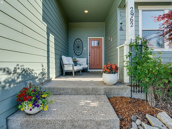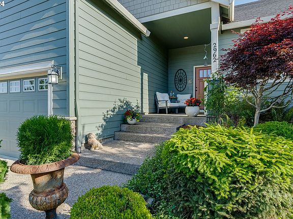 Wonderful one level home in an attractive NW neighborhood! Open concept great room with vaulted ceilings, cozy fireplace and laminate flooring. The dining room has an added large picture window and slider to let in the natural light and leads to a bright, expansive covered patio perfect for outdoor living. The kitchen is nicely appointed with 6'quartz eating island, brass hardware, nice sized pantry, stainless steel refrigerator, gas range, dishwasher, built-in microwave. The spacious primary suite is a lovely retreat with vaulted ceilings, ceiling fan and an added sliding door that accesses the center of the garden. Primary bathroom had a window added to let in the natural light, tile floor, shower and walk-in closet with organizers. A Bedroom at the front of the home has vaulted ceilings, closet and view to the front yard. Two additional bedrooms are nicely sized and all share a bathroom with tub/shower and tile counter vanity. The two car garage has storage, gas furnace & water heater and leads into the home through the utility room (washer & dryer stays with the home). The unique backyard features 4 large custom steel rings filled with river rock for easy maintenance and connected with pathways of sparkling pavers surrounded by lovely plantings, raised garden beds with exquisite maple trees and multiple sitting areas. Choose to wander the pathway through the private garden or just sit and enjoy. Easy living!