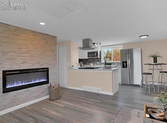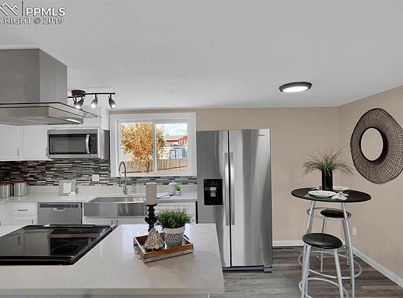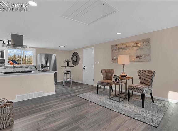 This home has been completely renovated inside and out! It home features a lovely open floor plan with eat in kitchen area; a gorgeous new kitchen with decorative tile back splash, granite countertops, new stainless steel appliances, farmhouse sink and island range hood. The living room features an electric fireplace mounted on a beautiful stone accent wall. The full bath has been tastefully redone with beautiful tile-work and wainscoting; all bedrooms have new laminate flooring with barn-house door in the master. New roof, siding, front door, garage door, paint (exterior and interior), baseboards, flooring, hardware, appliances & front yard landscaping. This home is just minutes from Ft. Carson, PPCC South Campus, shopping and dining, with quick access to I25! You donât want to miss this one!