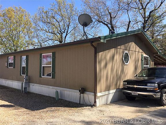Weekend Retreat or Full Time One Level Manuf. Home located in Lake Front Manuf. Home Community on Gravois Arm of Lake with great year around view of Lake. Includes slip in community Dock with boat lift. Most Furniture included in price. Nice Deck with deck furniture also included. Full Sheetrock walls, fenced area for your little furry friend(s) and located on end so plenty room to park. End of roadway parking is common area and well access. Park has large lakefront martini deck for those evenings to sit and relax the lake views and activities. Boat ramp for park use next to deck. Great community and nicely maintained. Come and enjoy the lake without all the work on house and yard.