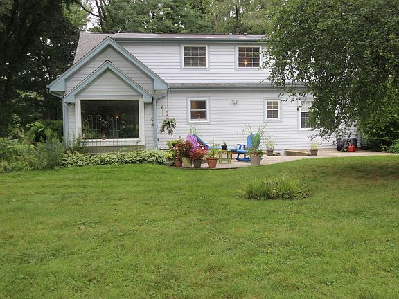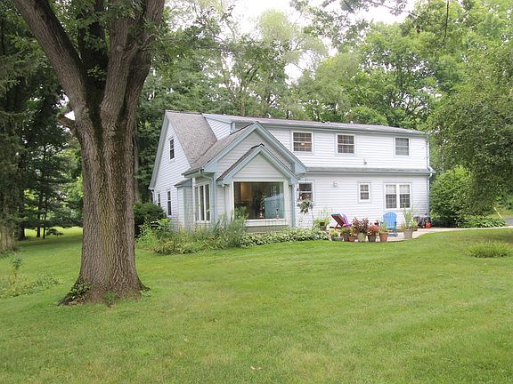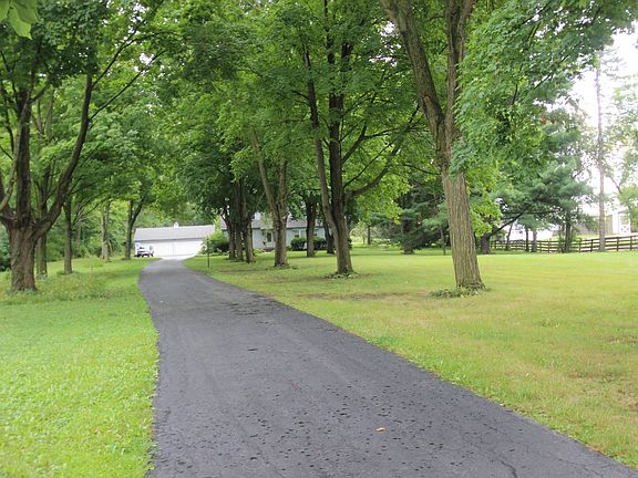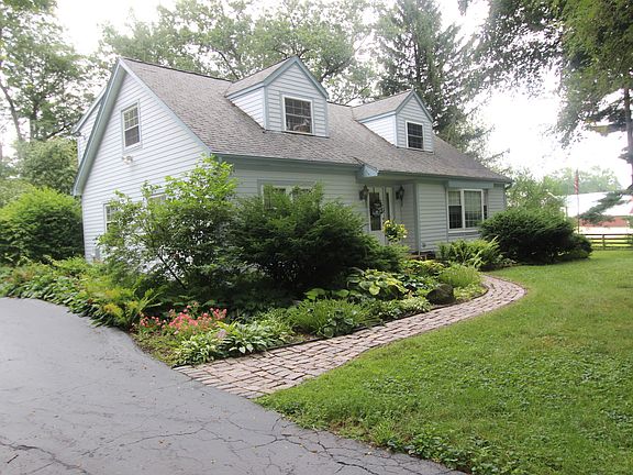 Horses Allowed!!! You'll drive down a long oak tree lined driveway to this house tucked back among the trees. Situated on 2.5 acres of land you'll find peace and serenity. Inside you will find a well maintained and updated home. In the living room there is a large front bay window where the light filters in and beautiful built ins with window seats. It flows into the dining room and opens to the kitchen featuring white cabinetry, plenty of counterspace and a convenient breakfast. Just off the dining room is the bright and beautiful sunroom with a great picture window looking out to the natural beauty of the backyard. There is also access to the patio where you might find yourself on a sunlit morning. Two bedrooms are located on the main level of this home along with a full bath. An oak staircase leads you upstairs to the master bedroom with sitting room and walk in closet, second full bath, fourth bedroom and a loft that makes a great space for a home office. There are closets throughout the home providing lots of storage space and also an unfinished basement with laundry space and a completely finished full bath. A detached four car heated garage allows for plenty of parking for vehicles, toys and outdoor equipment.