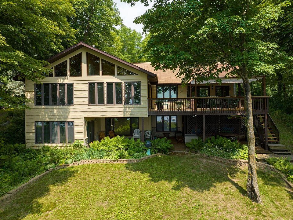 Take a walk on the sandy shores of this Red Cedar Lake gem, & you will realize this property is truly special. Large, private, southern facing lot w/ almost no elevation is ideal for anyone looking to live the north woods dream. Nestled perfectly to capture big lake views, updated well built 3 bed 2 bath, 2861sq.ft. home offers beautiful hardwood floors, expansive living area, outstanding lakeside main level bed w/fireplace, 2 add'l cozy fireplaces, gorgeous vaulted cedar ceilings, & rustic beam work. French doors lead into a spacious inviting sun rm. Outside offers large upper decks & covered lower deck areas that are ideal for entertaining while overlooking a beautifully landscaped yard & extraordinary sandy beach area. 3 car garage w/22x24 ft. bonus rm. Red Cedar Lake chain offers miles of recreational fun, great fishing, stunning scenery, golf course, a boat up restaurant & pub (live music). Cabin access to miles of ATV & snowmobile trails. Pontoon incl w/ many other furnishings.